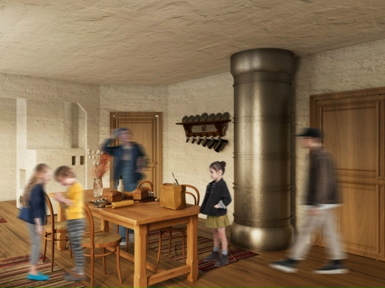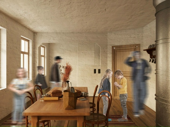 Также организаторы поделились планами на реорганизацию пространства. На странице аккаунта энтузиастов появились эскизы от штатного дизайнера. На них показано, как может выглядеть комната в старой мельничной конторе, где ранее были найдены фрагменты фундамента исторической печи.
