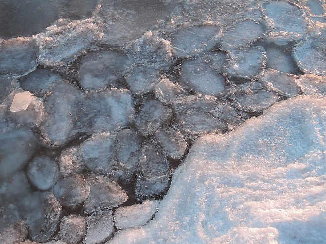 Обычно такое явление природы происходит в начале ледостава. Отдельные льдины сталкиваются, трутся, и их края обтачиваются до почти идеально округлых форм, формируя характерный бортик.