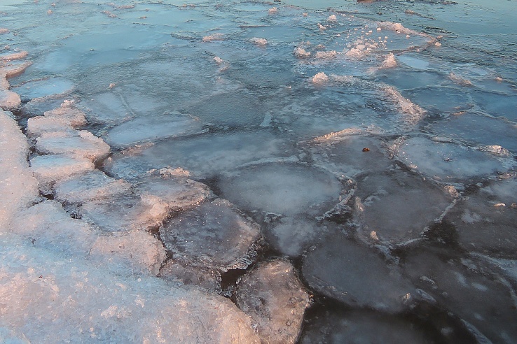 Саратовская Волга покрылась "ледяной брусчаткой". Круглые льдины с аккуратными, приподнятыми краями в воде заметили горожане.
