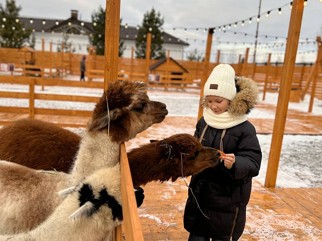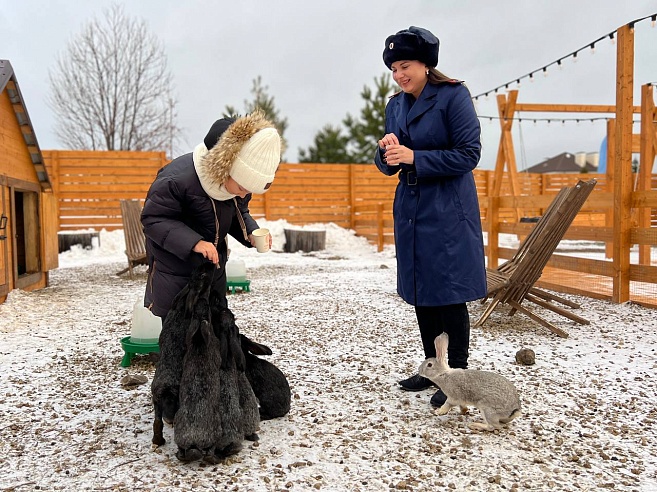 Прогулка в парке с животными стала продолжением встречи: вместе с сотрудниками управления семья "пообщалась" с альпаками, ламами, оленями и кроликами.