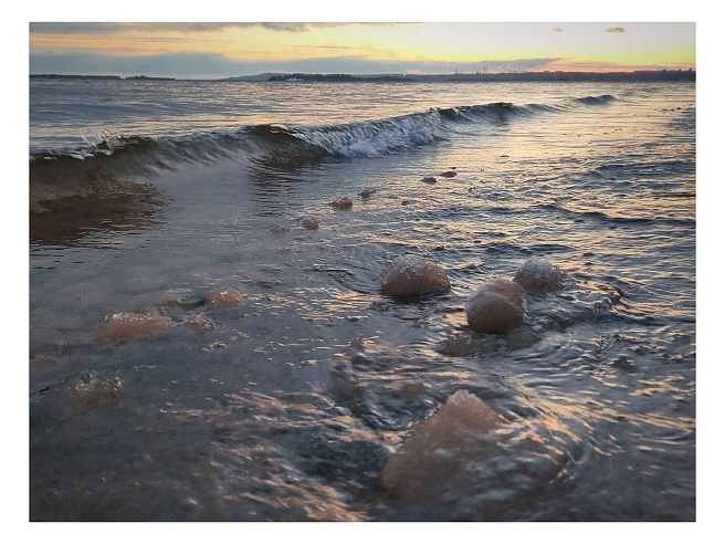 "Некоторые сфероиды уже выкатились на берег и замерзли в ледяные шары. Судьба остальных зависит от погоды в ближайшие часы. Сохранение мороза и волнения позволит остальным также стать ледяными сферами", - рассказал завкафедрой метеорологии и климатологии СГУ Максим Червяков.
