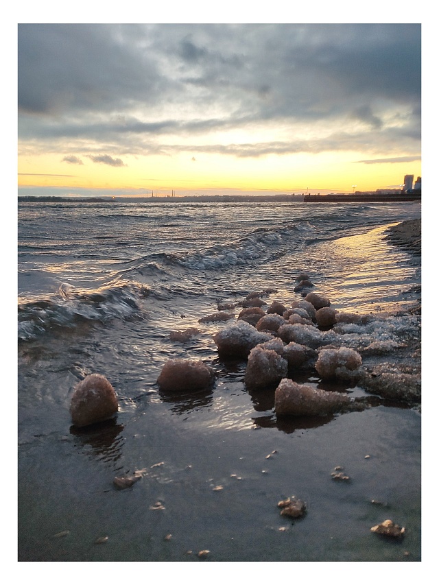 Саратовский пляж усыпан таинственными шарами. Это редкое явление удалось запечатлеть на берегу Волги.Всё начинается с шуги – ледяной каши из мелких кристаллов, которая появляется в воде, когда воздух уже холодный, а вода ещё близка к нулю. Волны начинают «лепить» из нее комья, а потом обкатывать их о песчаное дно. Вращение в прибойной зоне и делает их округлыми.