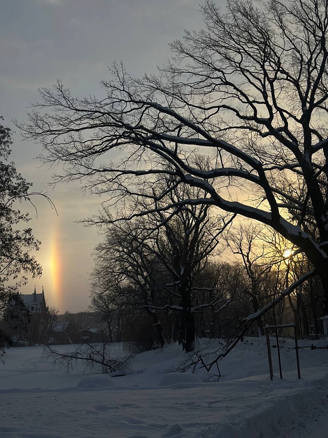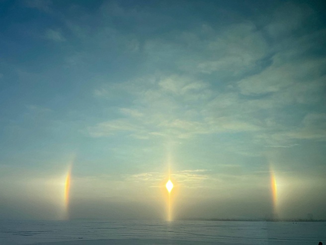"На самом деле, у гало бывает много разных видов и элементов: могут появиться касательные дуги, паргелический круг (световая полоса, параллельная горизонту), световой столб над или под солнцем", - поделился информацией Червяков.