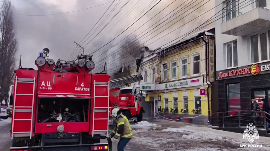В центре Саратова 27 января огнеборцы ликвидировали пожар в двухэтажном доме на улице Большая Казачья. Сообщение о возгорании кровли здания поступило в 14:38. На первом этаже дома расположены магазины, на втором — жилые квартиры.По данным МЧС, 11 человек самостоятельно эвакуировались из здания. Пострадавших нет. На месте происшествия работали сем пожарных расчетов. Из-за плотной застройки существовала угроза перехода огня на соседние строения, однако ее удалось предотвратить.