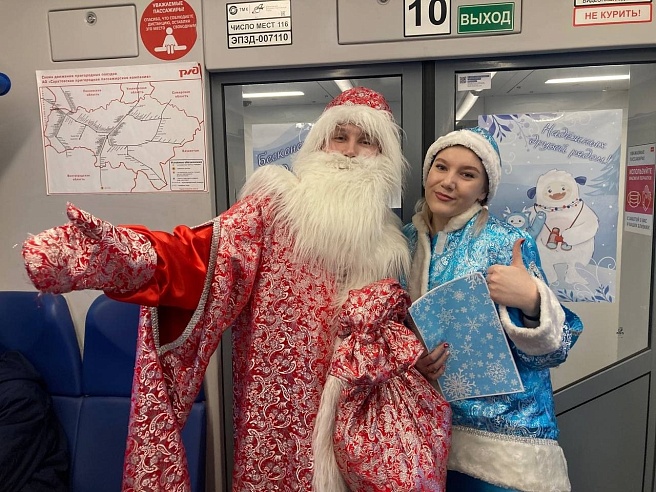 В предновогоднюю неделю в пригородных поездах в Саратовской области можно встретить Деда Мороза и Снегурочку, поздравляющих пассажиров с наступающим Новым годом. Они проводят различные конкурсы и игры в электричках, следующих из Саратова в Анисовку, Татищево, Жасминную, Тарханы (и обратно).