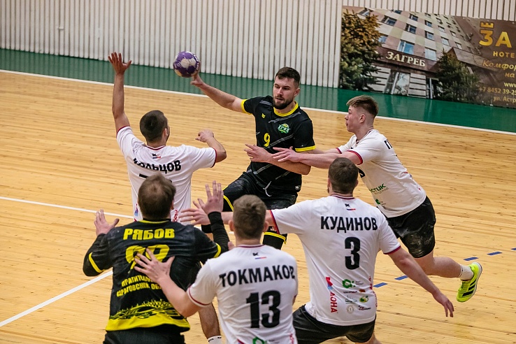 Матч "СГАУ-Саратов" против волгоградского "Каустика" был важен для обеих команд мужской гандбольной суперлиги. В начале матча волгоградцы оторвались от саратовских спортсменов на пару мячей, но уже к десятой минуте "СГАУ-Саратов" смог отыграться благодаря слаженным действиям в нападении. Последним рывком стали несколько важных "спасений" голкипера Юрия Сергеева.Практически до самого перерыва команды шли мяч в мяч, пока перед завершением первого тайма лидеры нашей команды Артем Пономарев и Игорь Сорока не забросили важные голы, на которые у волгоградцев не нашлось аргументов. Таким образом, первая половина матча закончилась со счетом 19:17.