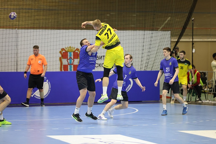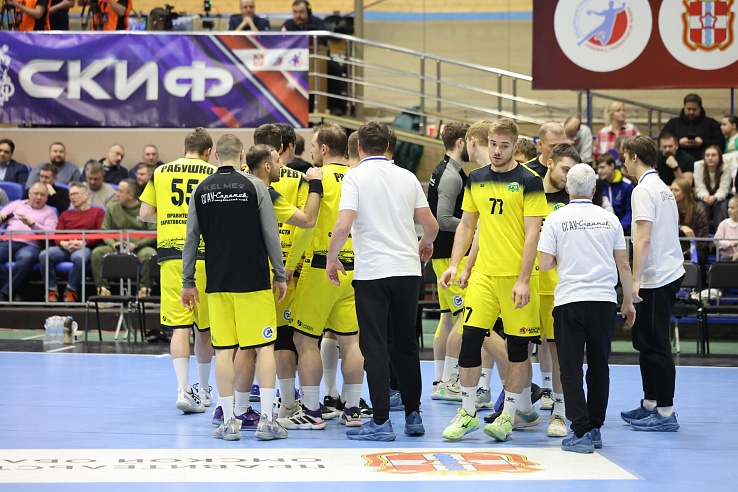 Игра началась динамично: обе команды активно забрасывали мячи. Саратовцы быстро вышли вперед, но долго не могли оторваться больше чем на один–два мяча. Лишь к середине первого тайма разрыв увеличился. Голкипер саратовской команды Давид Никабадзе сделал несколько важных сейвов, а партнеры поддержали его точными бросками. К 22-й минуте преимущество составило +7, и по итогам первой половины счет был 16:21 в пользу саратовцев.